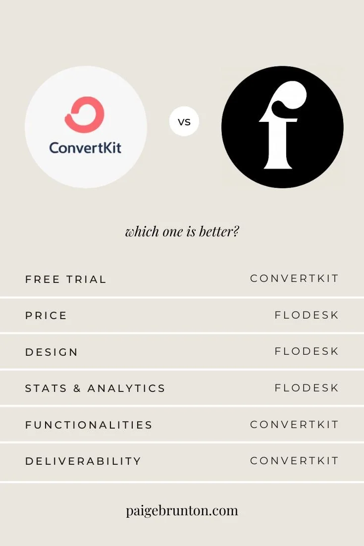 So which should you choose? Honestly, when I did this review a couple of years ago I gave Convertkit* the win, but in the meantime Flodesk* has caught up and honestly they’re both neck and neck these days in my opinion! So the choice is yours… now if I was to choose again, I’d still go for Convertkit*… why? Because for me the extra functionalities win out, but if you have a more visually based business - think clothes, jewelery or interior design you might find that Flodesk* is the one for you!