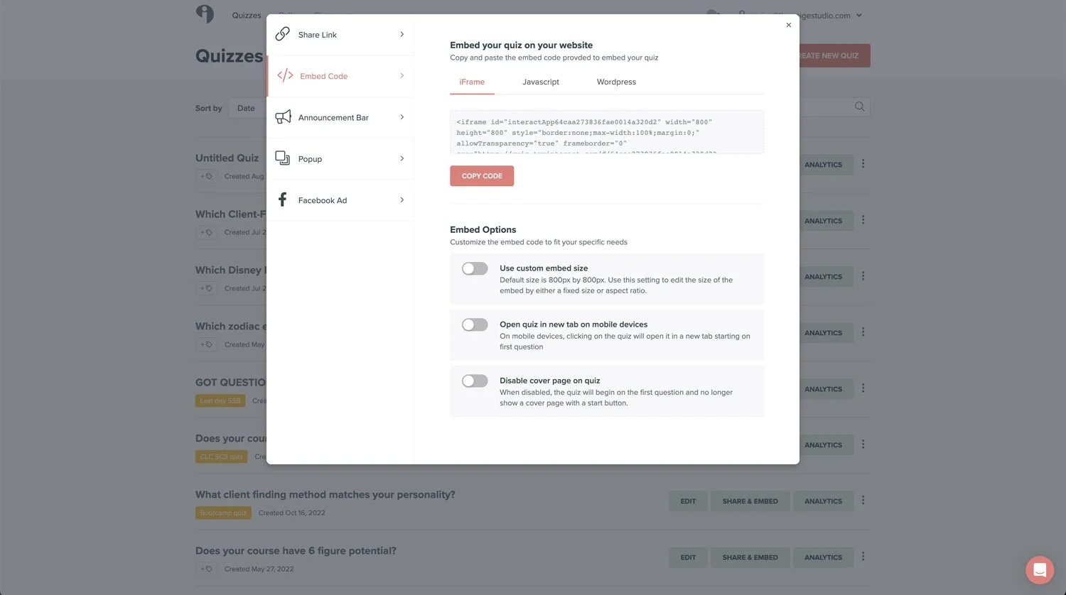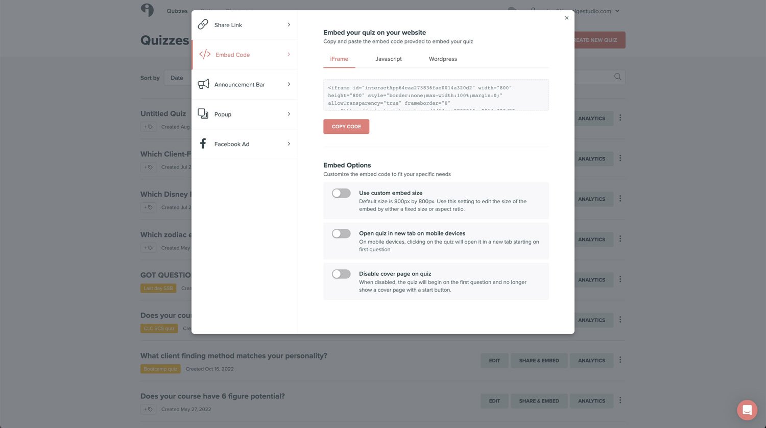 So now we have our quiz set up, it’s time to embed it on our Squarespace website.