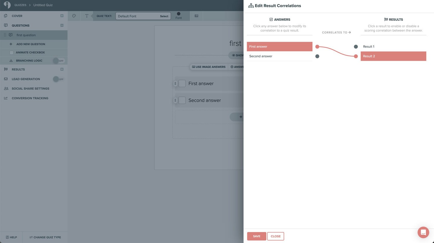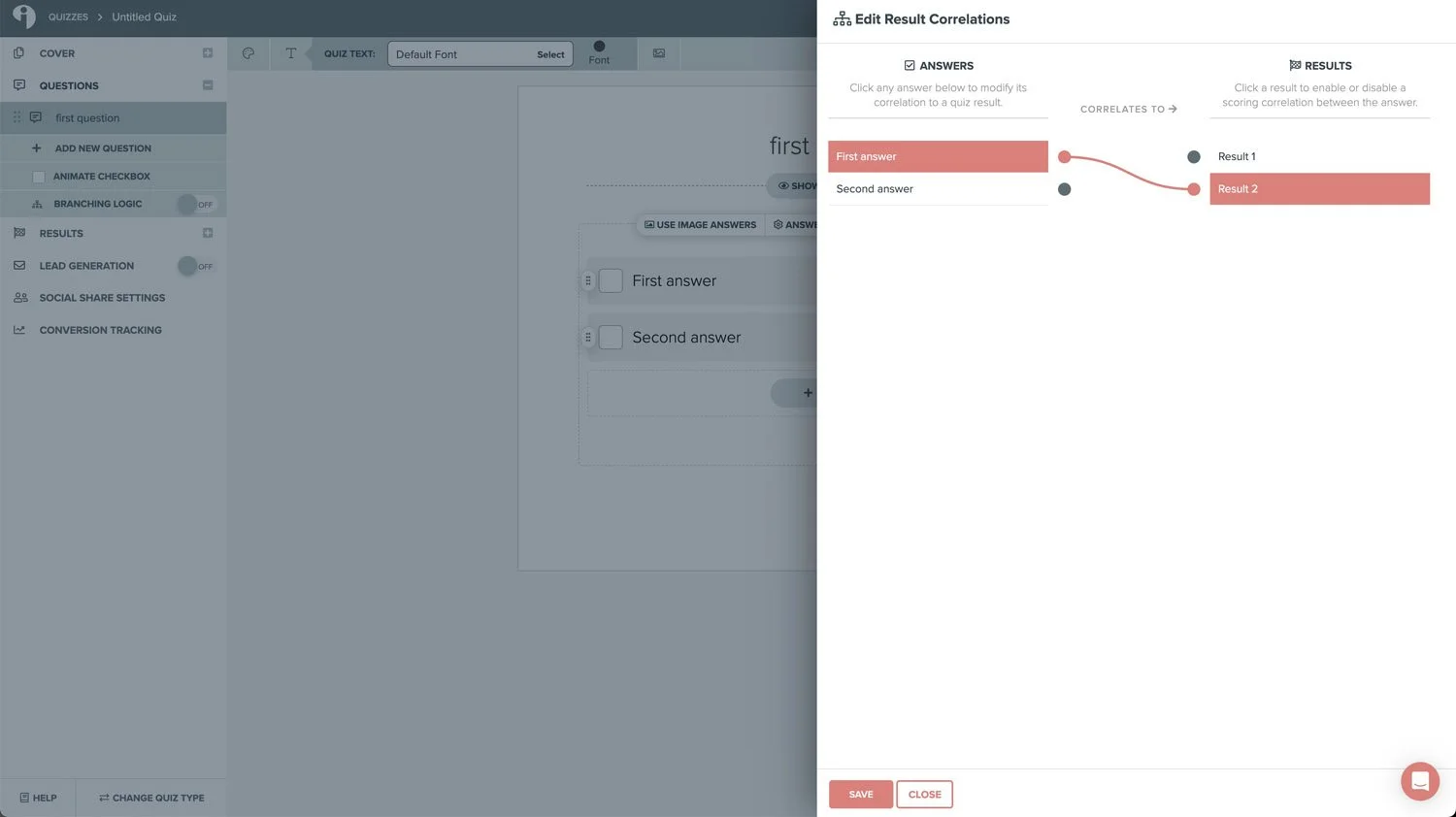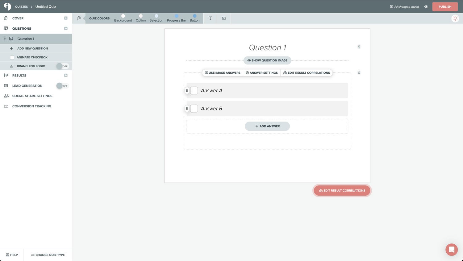 For each question you then map the answers to your responses. Click “Edit result correlations” to do this. You do have the option not to map a specific answer if you don’t want to, just know it means it won’t contribute to the end result if that’s the case.