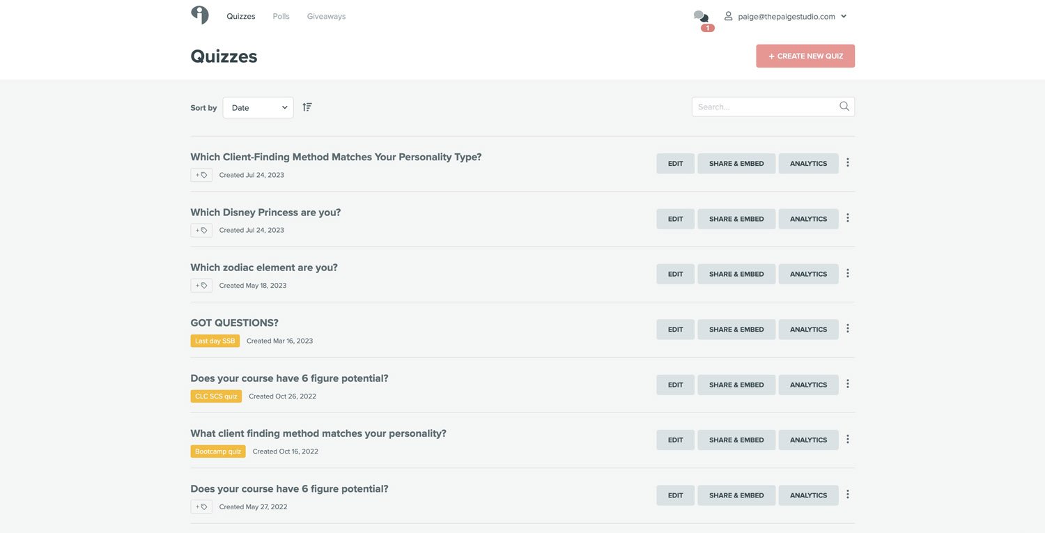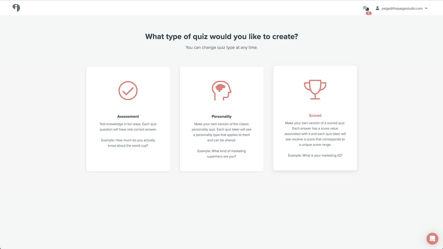 As I mentioned, the quiz software I chose is called Interact (you can try it for free here*), I’m super happy with it, it’s designed specifically for lead generation and has all the bells and whistles I need and all the functionality I need to create the type of quizzes I want, from scored quizzes to regular answer questions, get a result type quizzes.