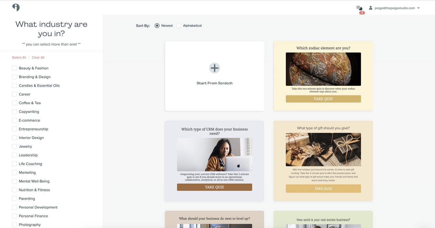 Also the entire point of this is for you get leads, so you’ll also want the software to connect up and directly integrate with whatever email marketing software you’re using (I love Convertkit*) and ideally, also be able to map people’s specific answers to your email marketing software too. For example, if a question asks "how far along in your watercolor painting journey are you? and they say beginner, and you have a product for beginner watercolour painters, you then know who on your list to sell that course to! So ability to map answers to email list subscribers is key!