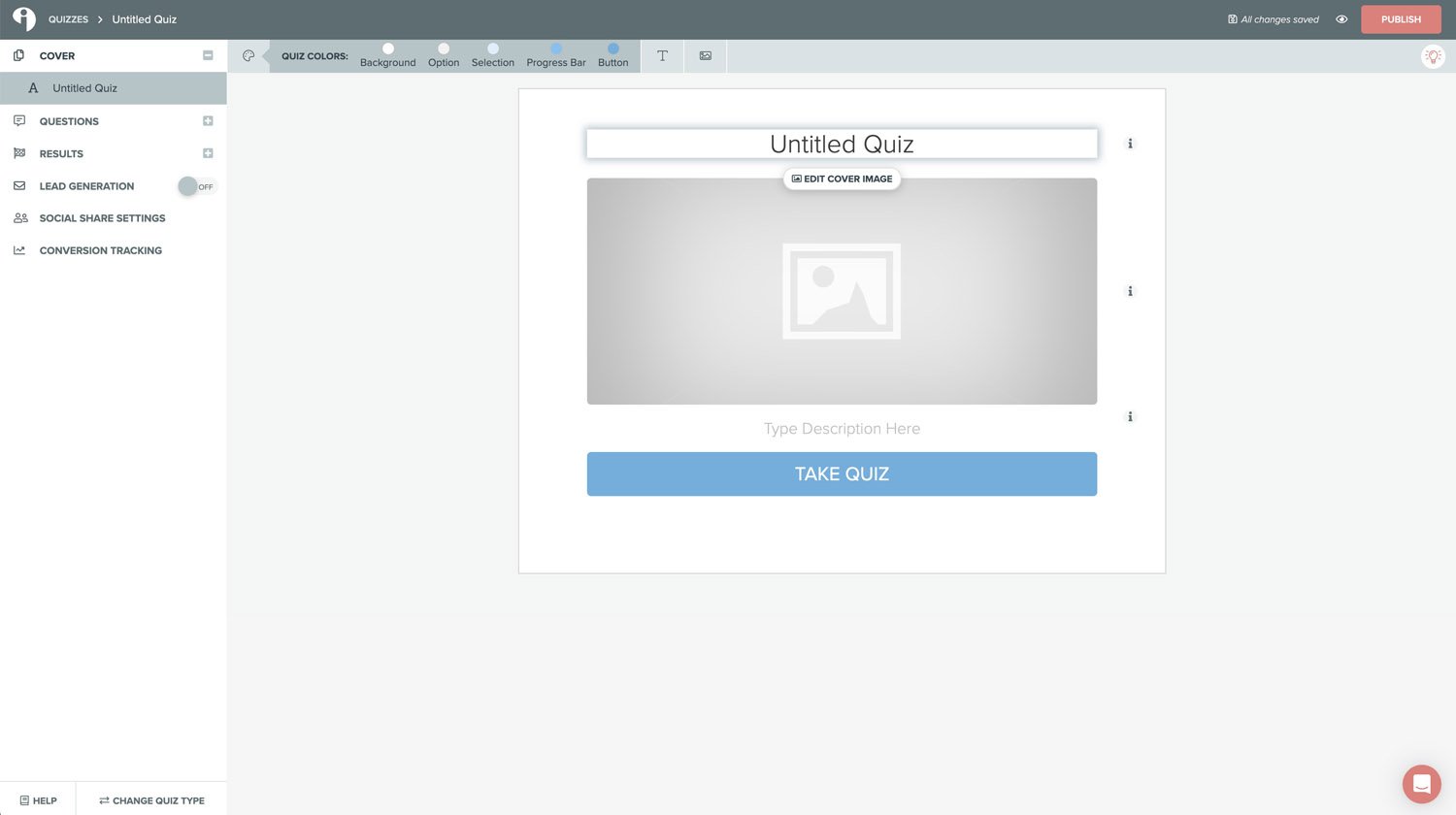 This includes your title, an image if you’d like to add one and a quiz description (which if your quiz is linked to from elsewhere you may not need, although it can work well to say something that tells people your quiz is quick n easy to take like “find out in just 45 seconds” or similar) but you’re gonna wanna make that title irresistible!