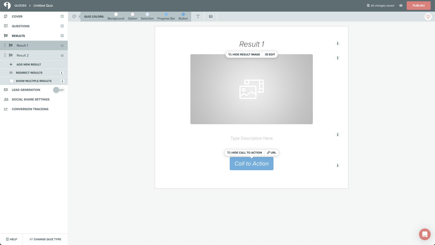 Here you’re building out the number of possible results and what you want to tell your quiz-taker about themselves or their next step depending on the result they receive. Know that here you can also choose to redirect your quiz taker based on their result if you prefer to create a landing page that’s more on brand or contains more information.
