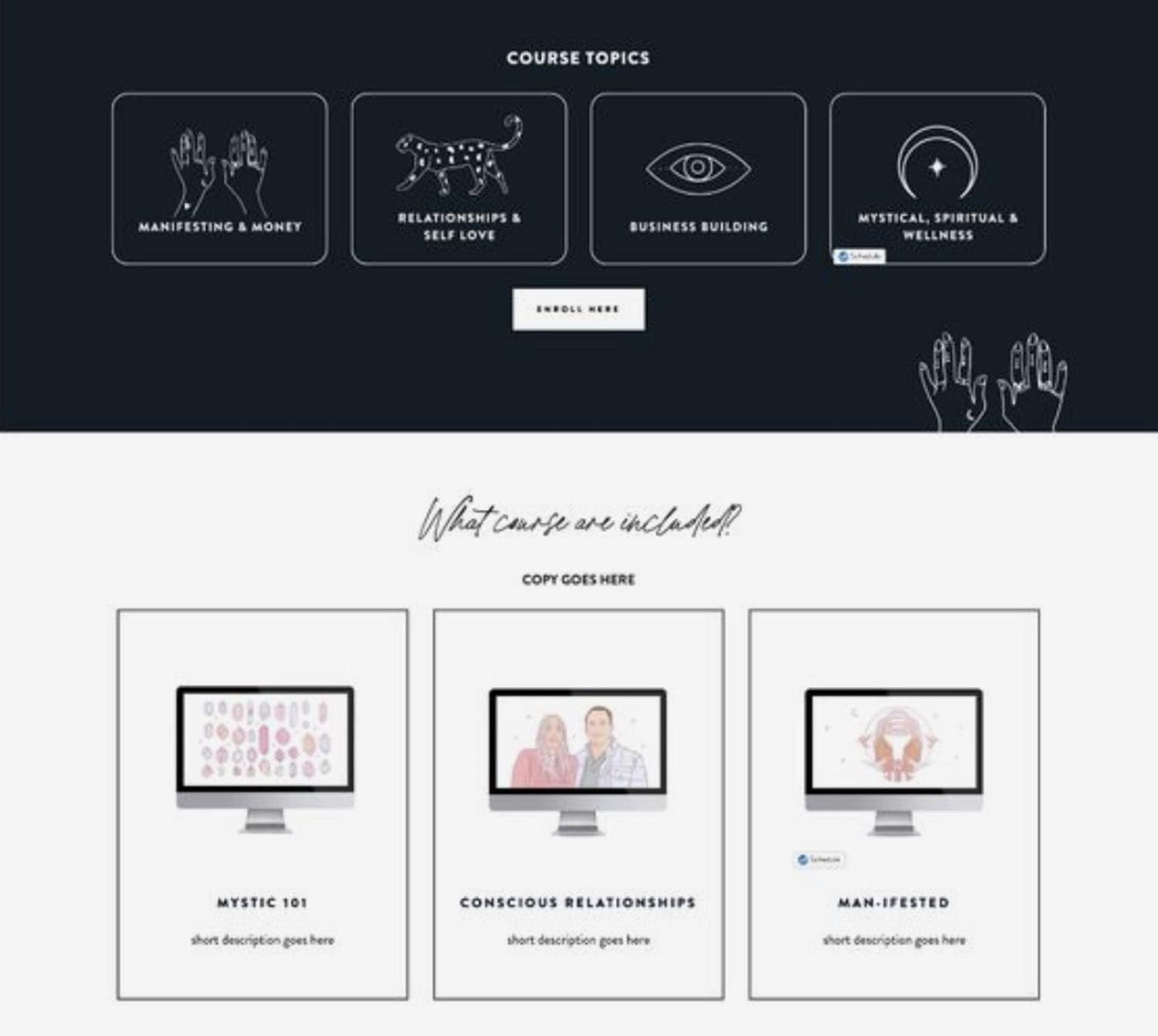 So we can see here we have the different course topics which are all perfectly aligned side by side they're all the exact same ratio and everything when we go down to these sections here it all is perfectly aligned in a grid.