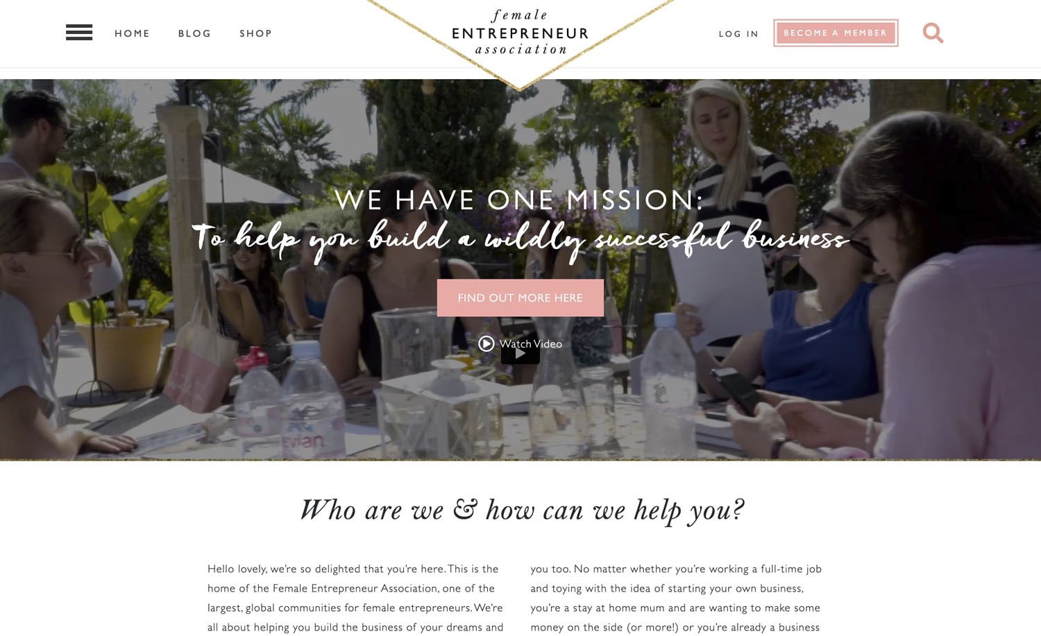 If we also head over to the Female Entrepreneur Association website there's also a sort of like hand-drawn scripty-looking font that says “to help you build a wildly successful business”.