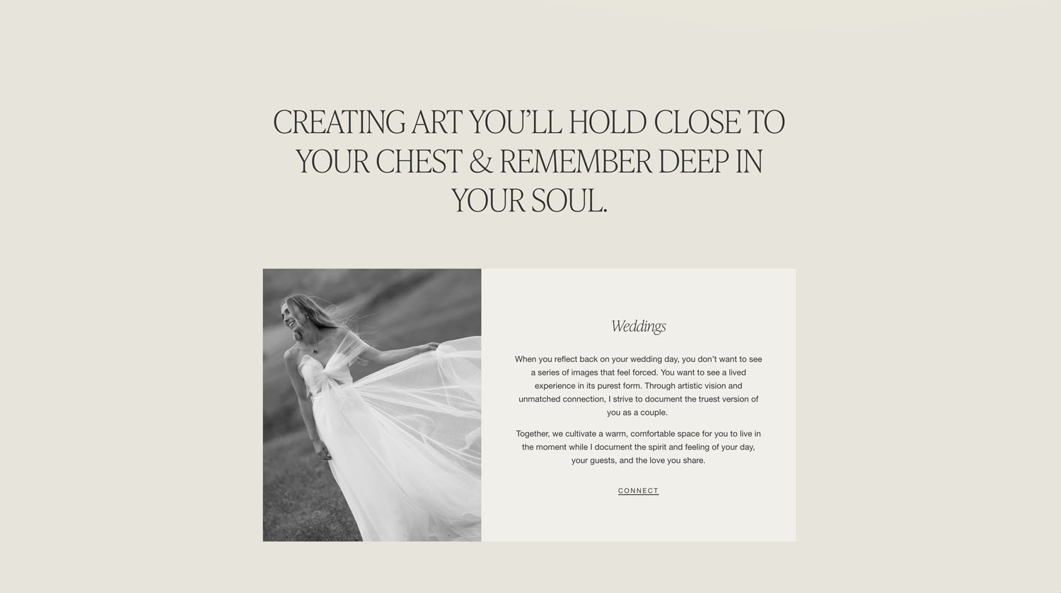 This was super common a few years ago, but really makes your website look outdated at this point whereas here at the bottom of the page on Ashlyn Carter’s website we have a little what looks like an abstract sort of squiggly quickly drawn line. Something like these little abstract touches sprinkled throughout the website can really elevate your site & keep it looking modern & fresh.