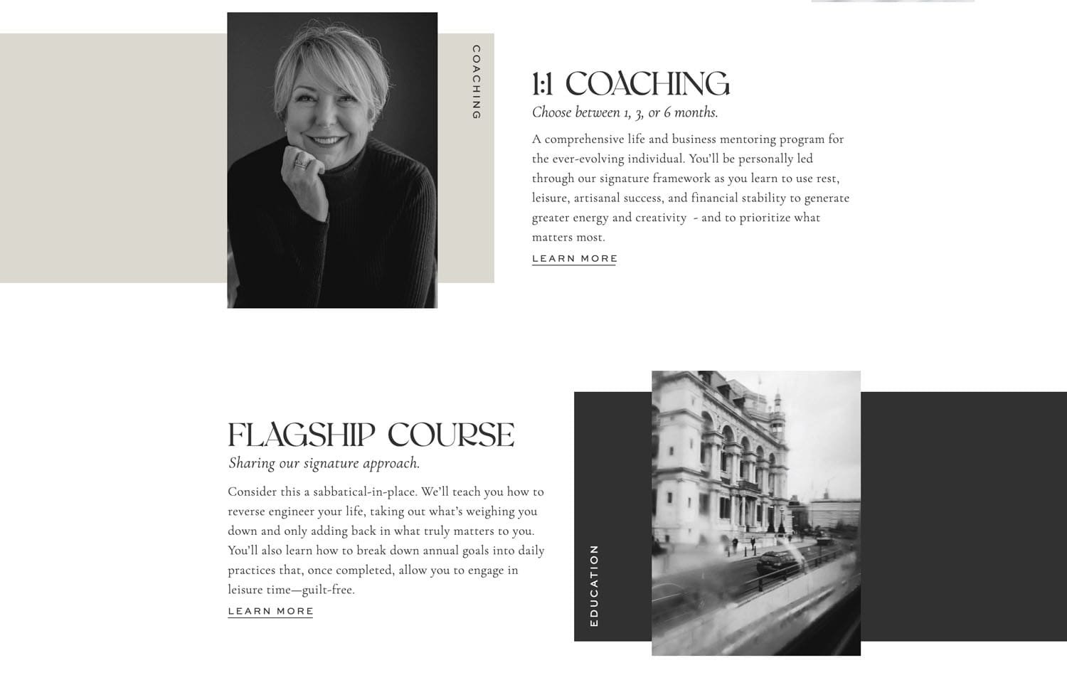 We have some images, we have some blocks of color, we have the details of the service but as you go down the page you see the different offerings and they're designed in a way that is a bit more elevated, a bit more creative.