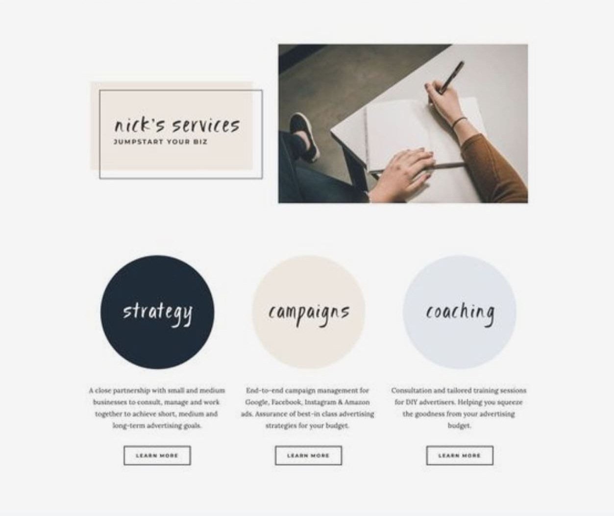 This looks a lot more modern to me as a way to lay out your services or your different offerings.