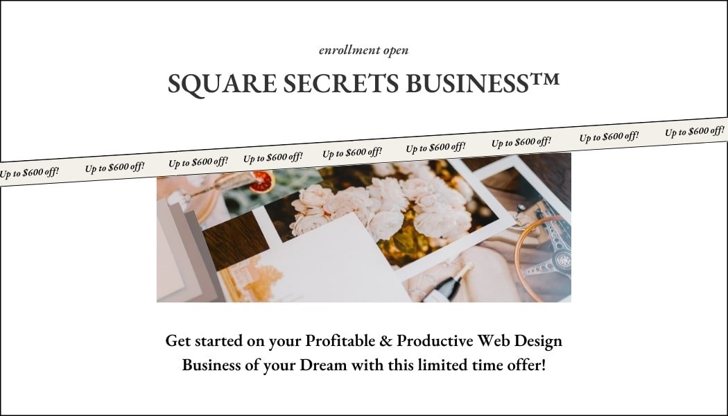 Join Square Secrets™ and get all the tools to start building beautiful websites. Or, if you're ready to go all in, grab the bundle and learn how to build your entire web design business from the ground up.