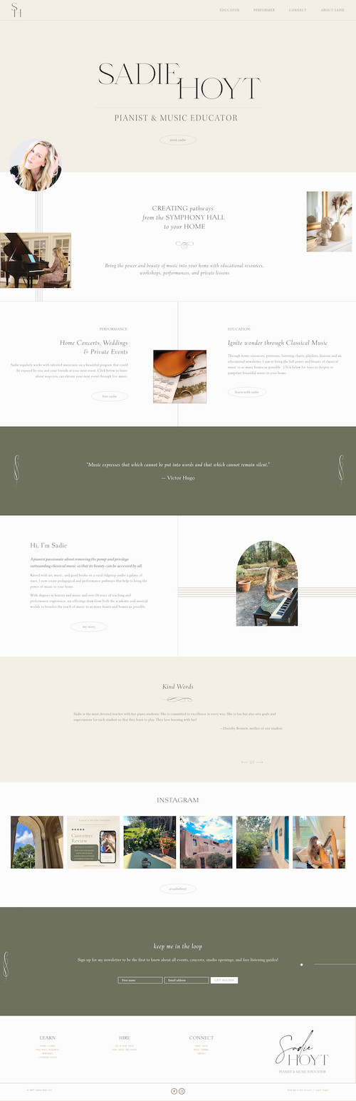 The Instagram feed is pulled in, and then we have a beautiful call to action for the newsletter in the footer there as well.