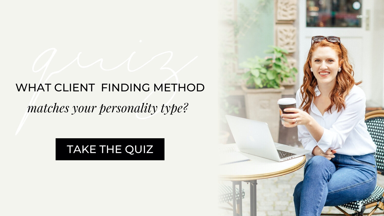 If you need help discovering which marketing focus makes sense for your business, then my QUIZ: “Which client-finding method matches your personality type?”was created just for you!👇
