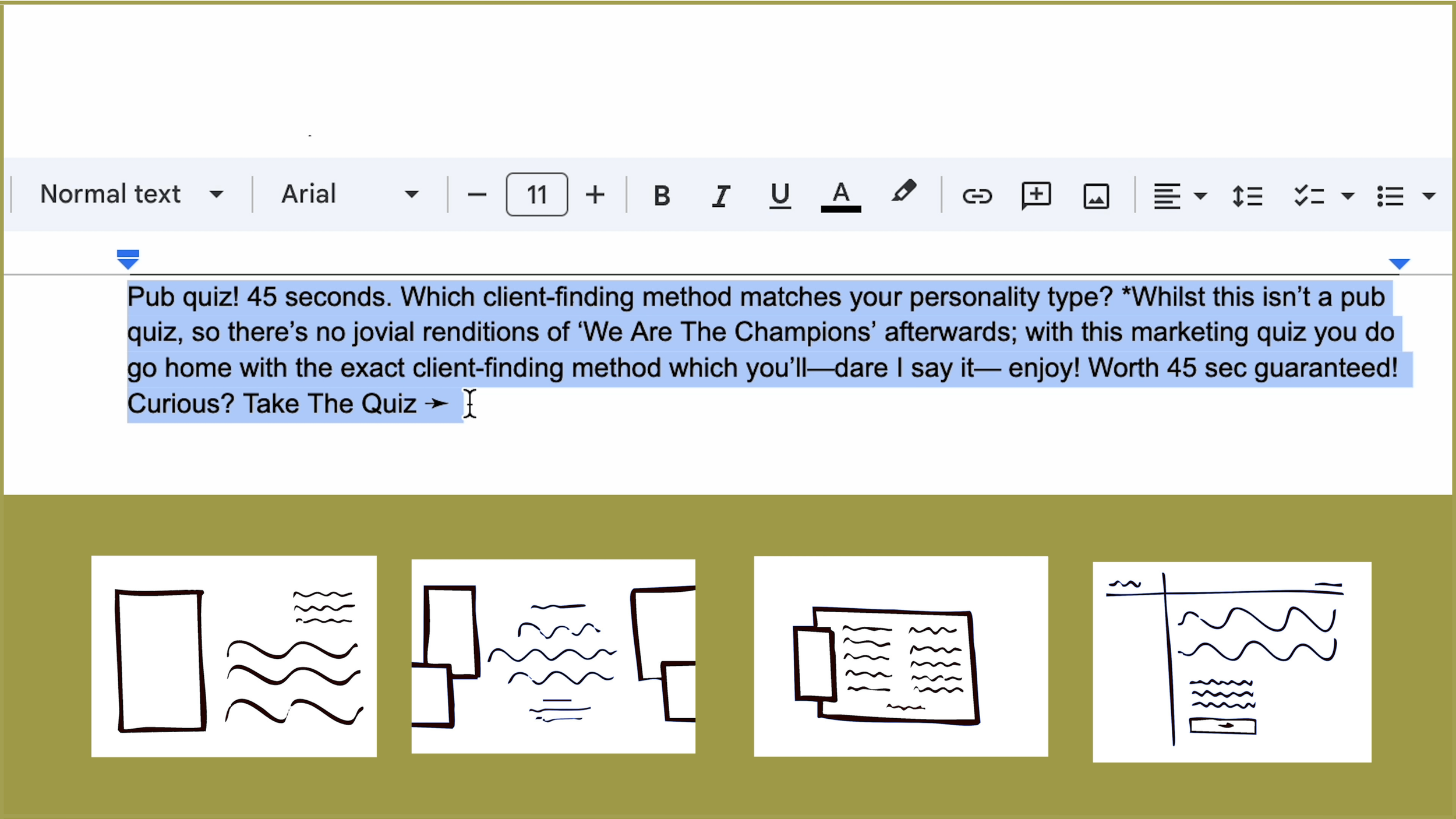 Lets take a look at the copy and layout options and i’ll show you how i chose which layout to ultimately go with.