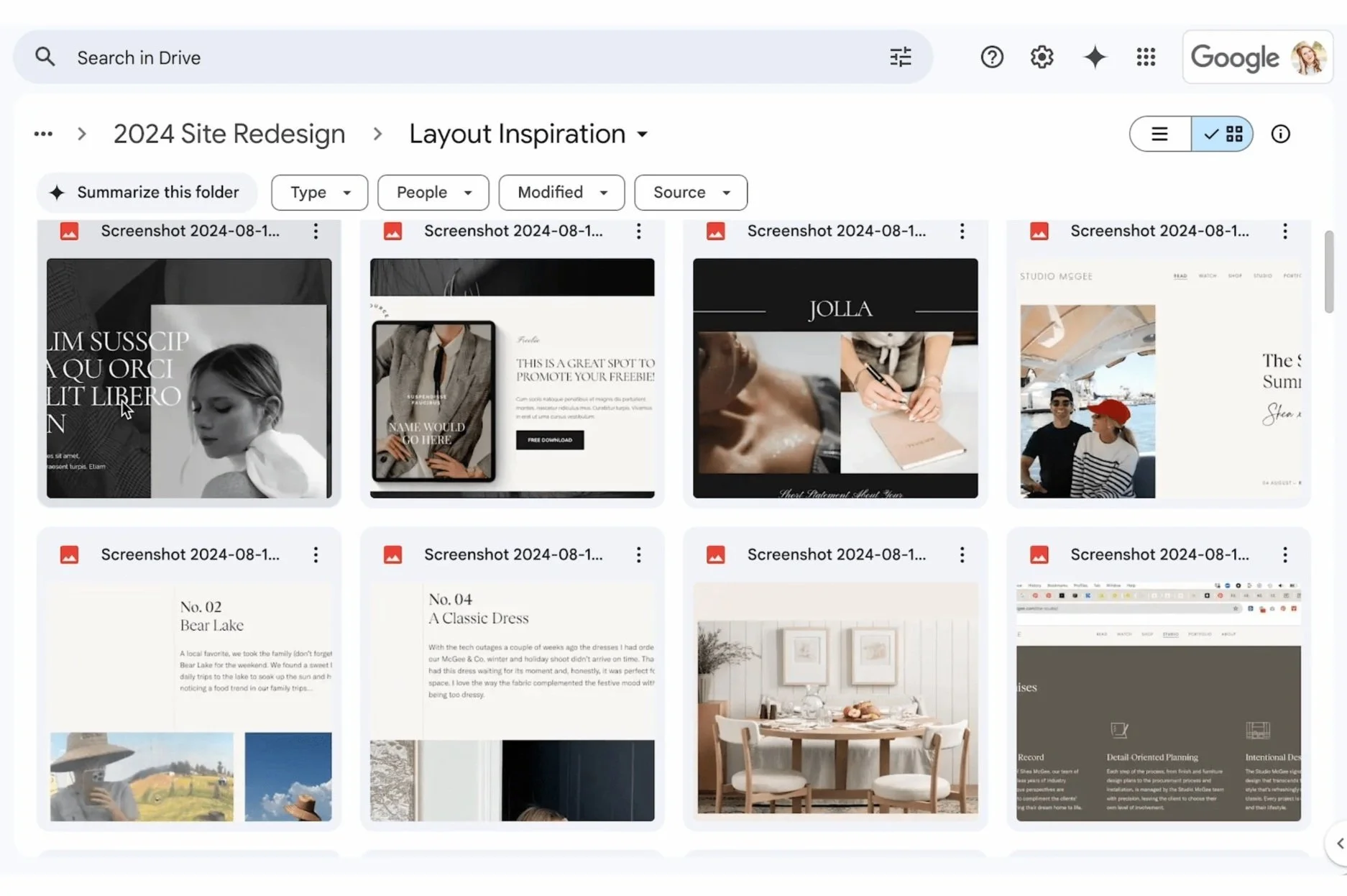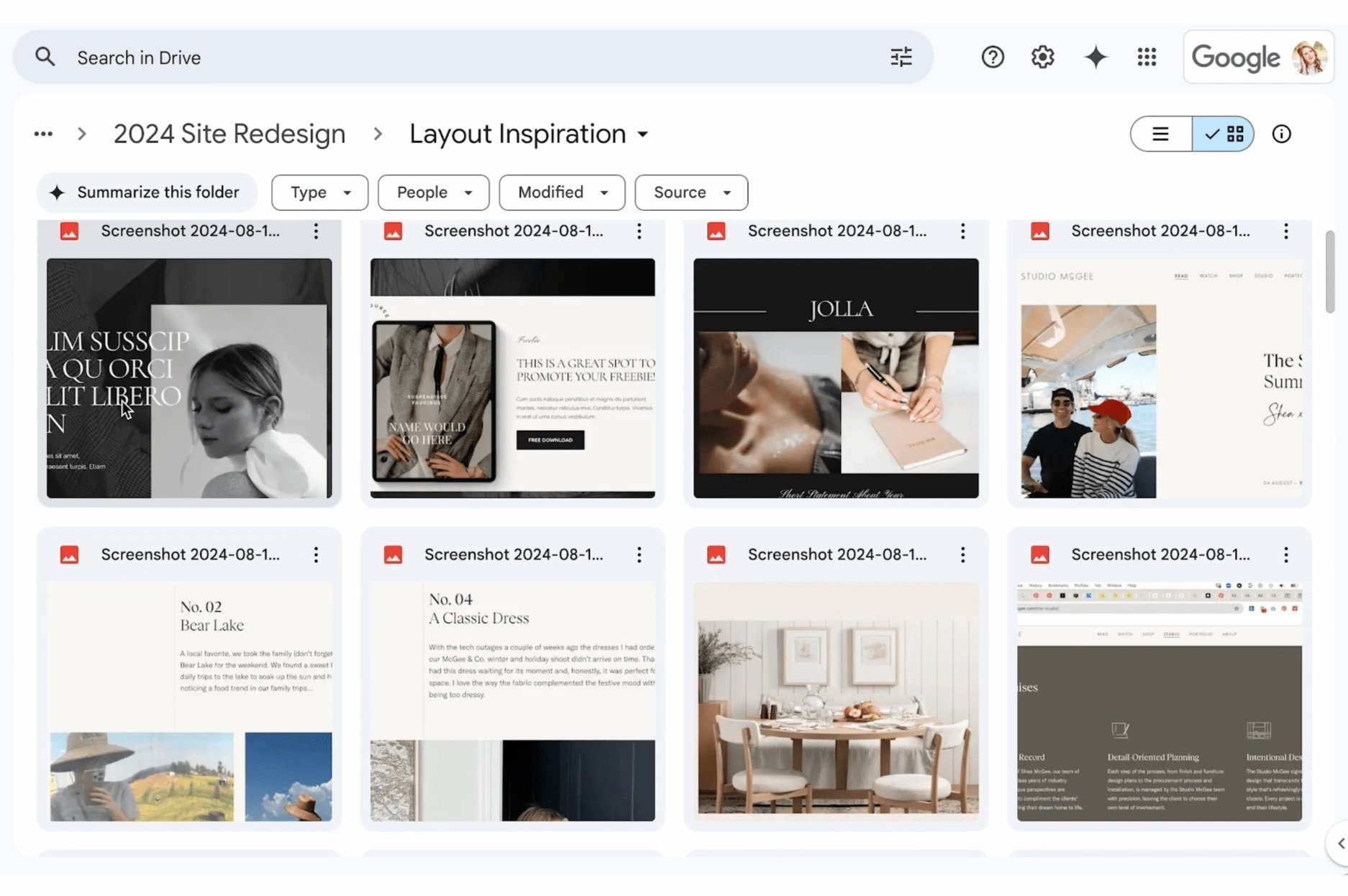 Once I have my brand vibe locked in, I move on to gathering specific website inspiration.