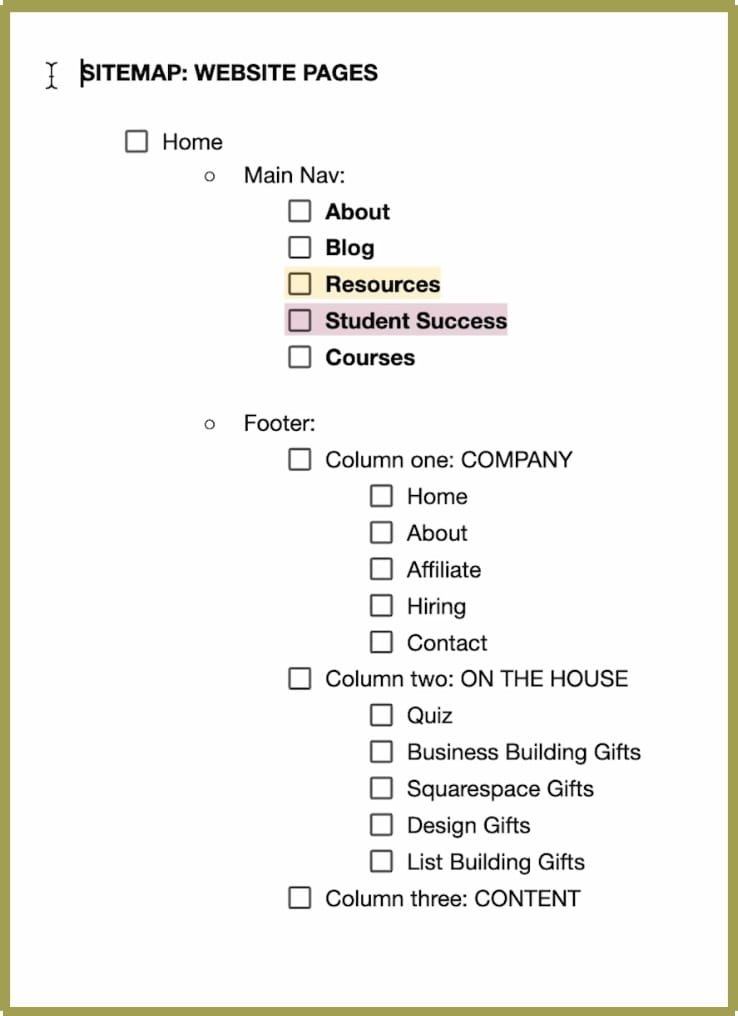 2. Map Out the Sitemap: next, I’ll map out the Sitemap, so we know exactly which pages we need.