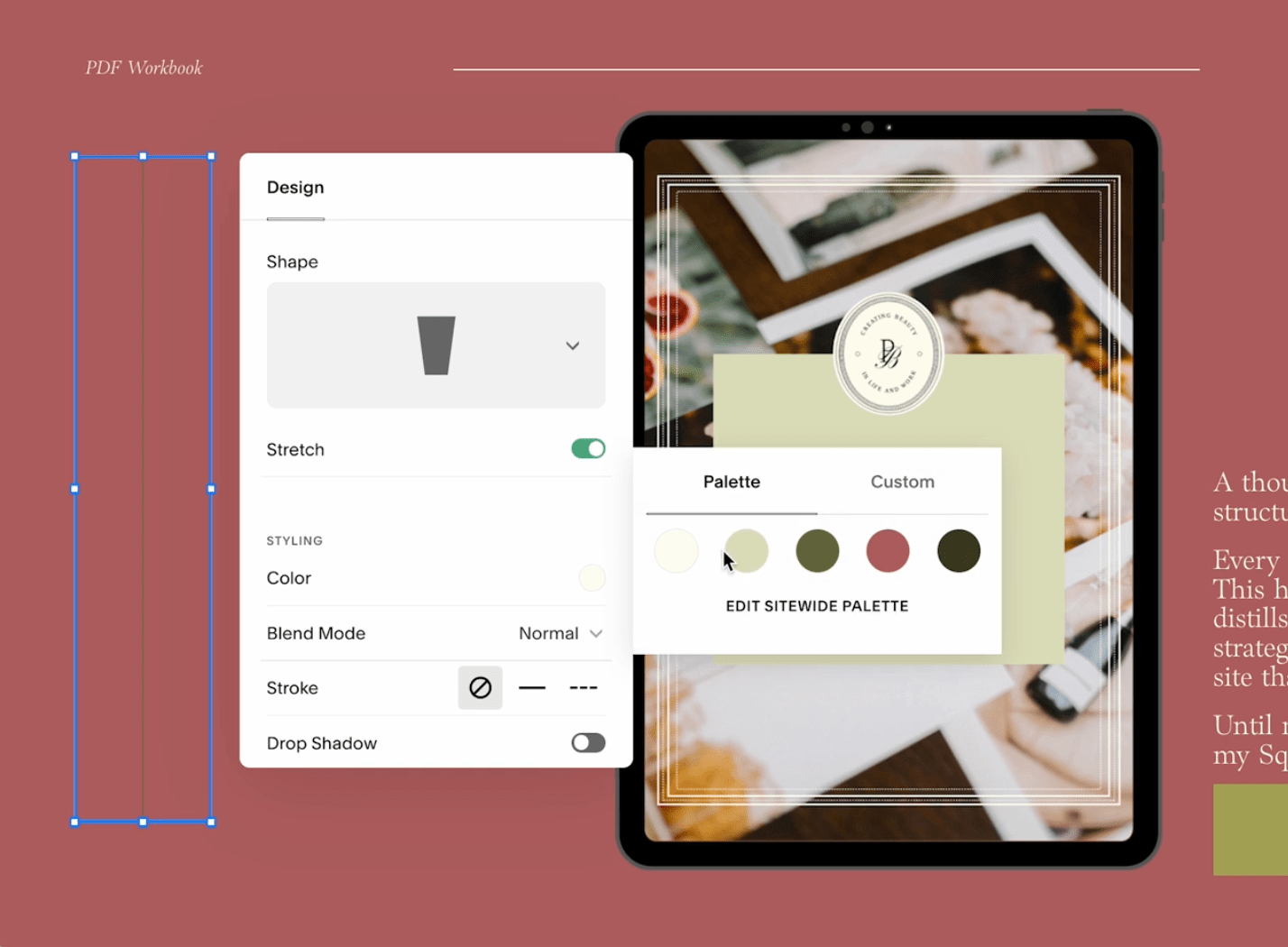 I love using SquareKicker to customize my site without writing a line of code—especially for things like turning text sideways or adjusting section layering.