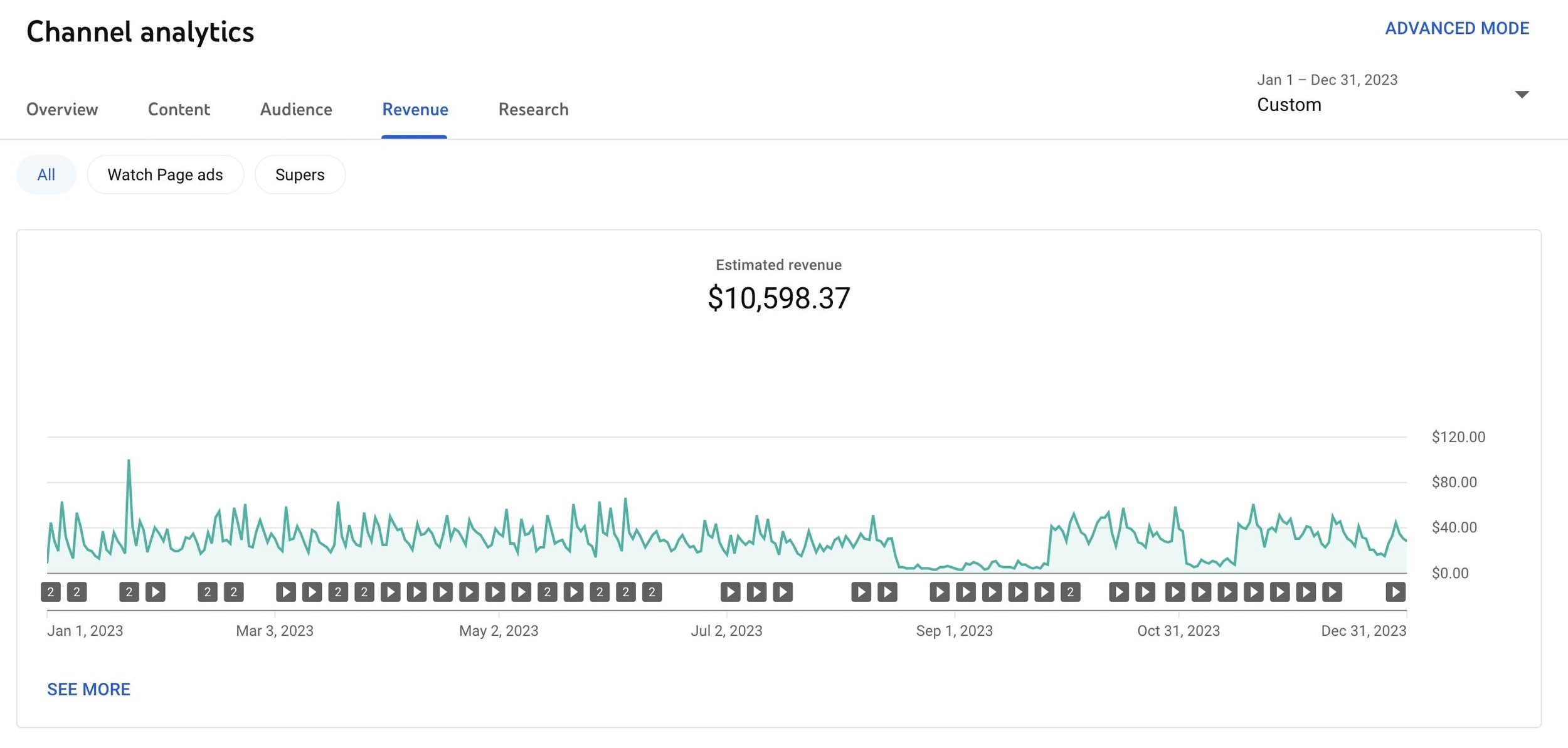 So we made $10,516.68 in 2023 from YouTube AdSense.